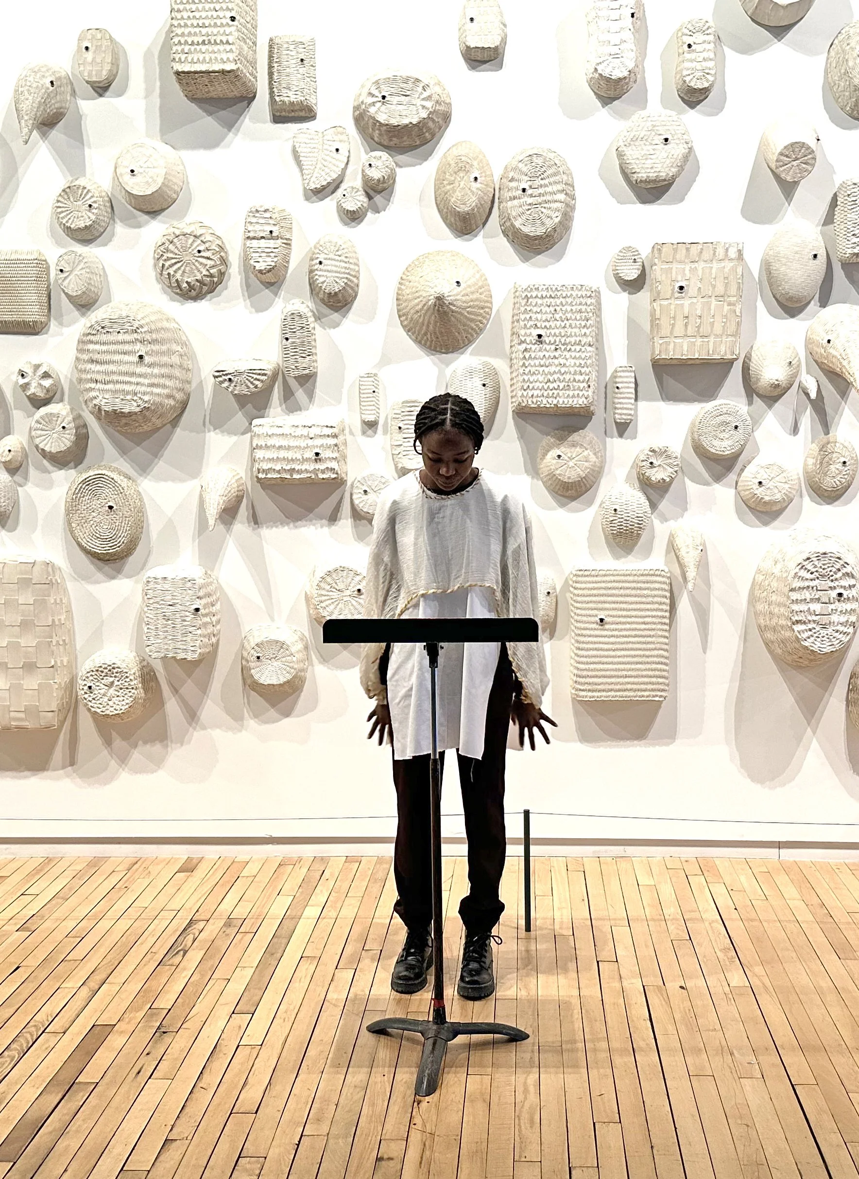 David Lang's piece,'When I'm Alone', performed alongside Amy Podmore's sculptural wall installation, 'Audience', February 2025. Performed by Williams College Chamber Choir, under the direction of Anna Lenti.