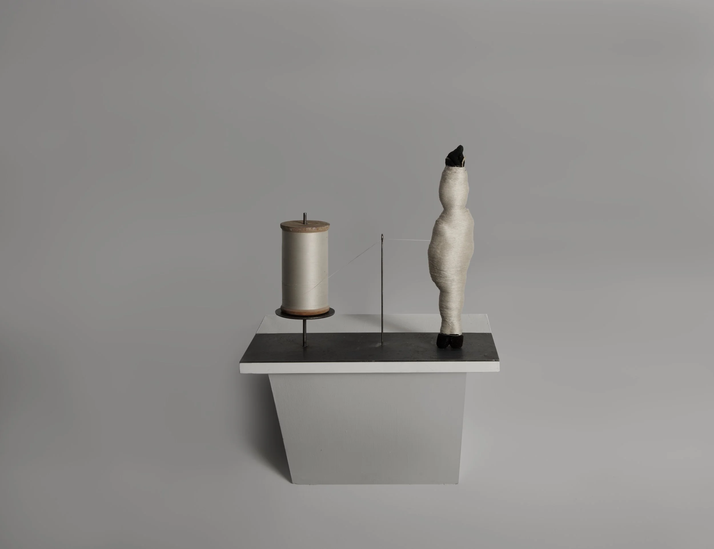 Steel, found object, large spool thread 15 x 18 x 8”